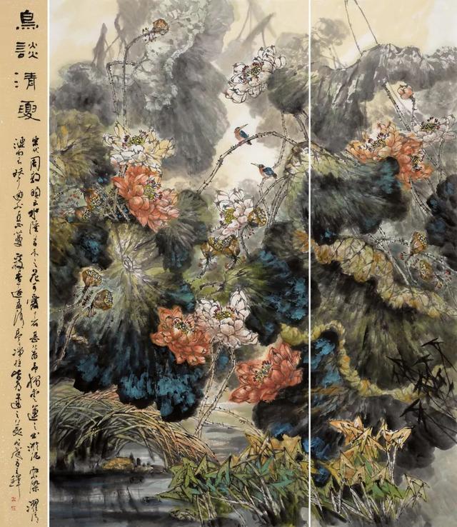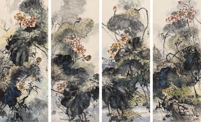 荷花四条屏