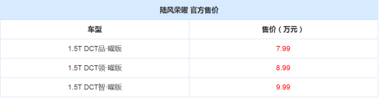 这样一款外观动力都表现抢眼的SUV,在价格方面也是诚意满满。7.99万的起售价,对于A0级别的SUV而言,简直是“降维打击”,这样“来势汹汹”的陆风荣曜,会是你的菜么?