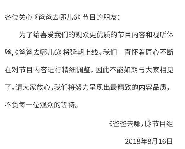 曾经定档去年八月播出,但是却两次延期,节目组的声明一次次道歉,却从未直接说明是什么原因。经历两次延期,压播一年半之后,有网友发现第六季今日已在芒果tv国际版上线。