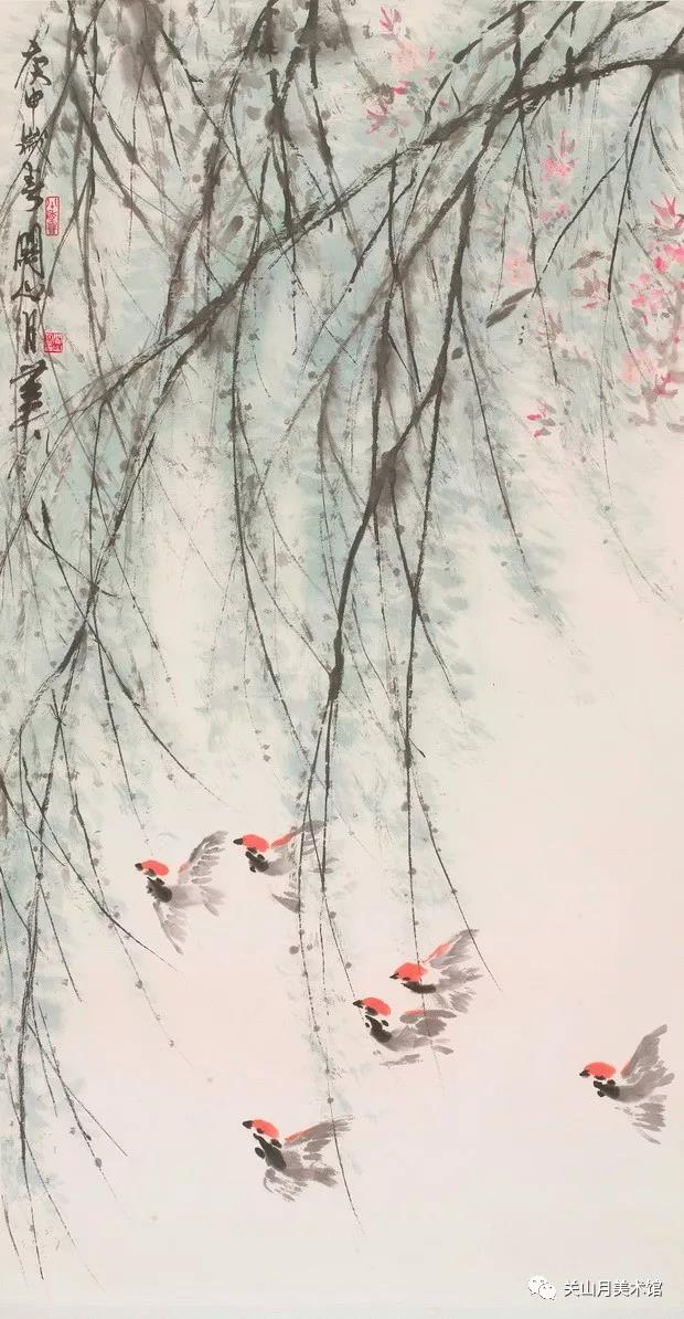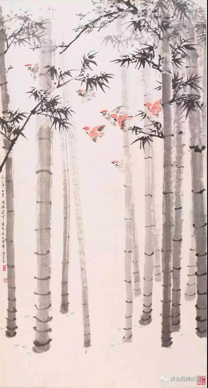 关山月是20世纪中国画变革进程中的代表性画家,秉承“笔墨当随时代”的理念,在各个时期都留下了反映时代思想文化内涵的作品。花鸟画作为中国画的重要画科之一,在20世纪50年代以来的社会转型和文化变革中,以其表意传情、托物寓意的独特手法与传统笔墨意趣的特点,创造出了诸多适应时代需要的优秀作品,体现了中国画传统的强大创造性。