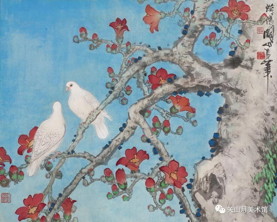 《红棉白鸽》 1977年 71×88cm 纸本设色