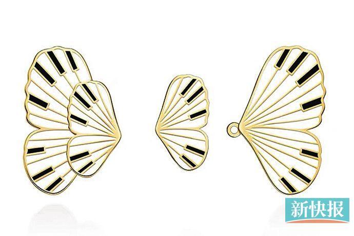 钢琴蝴蝶双层耳钉