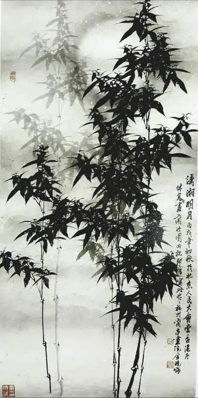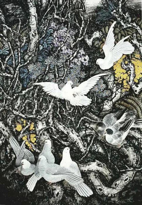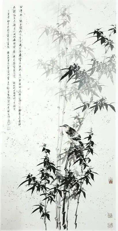 金晓海素以花鸟画著称,其实他早年浸淫于山水语言的磨砺已极具功力。悬挂于全国人大会议中心的巨幅《万古常青》、《西双版纳雨林》、《泰山乔松》等图式得以印证,之后拜陆抑非先生转为花鸟。