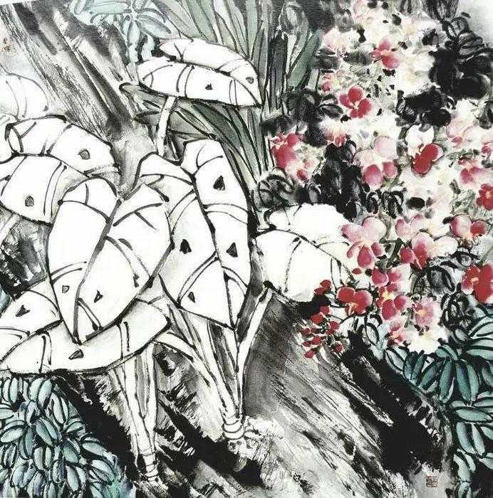 于一组兰的数叶数十叶,乃至数组数十组的表现,各就趣势,曲尽意态。前后俯仰,左右朝揖,上下呼应,顾盼生情。他又将主题兰叶形姿表现予以适度夸张,故而主客体分明,虚实相映,墨气勃发。