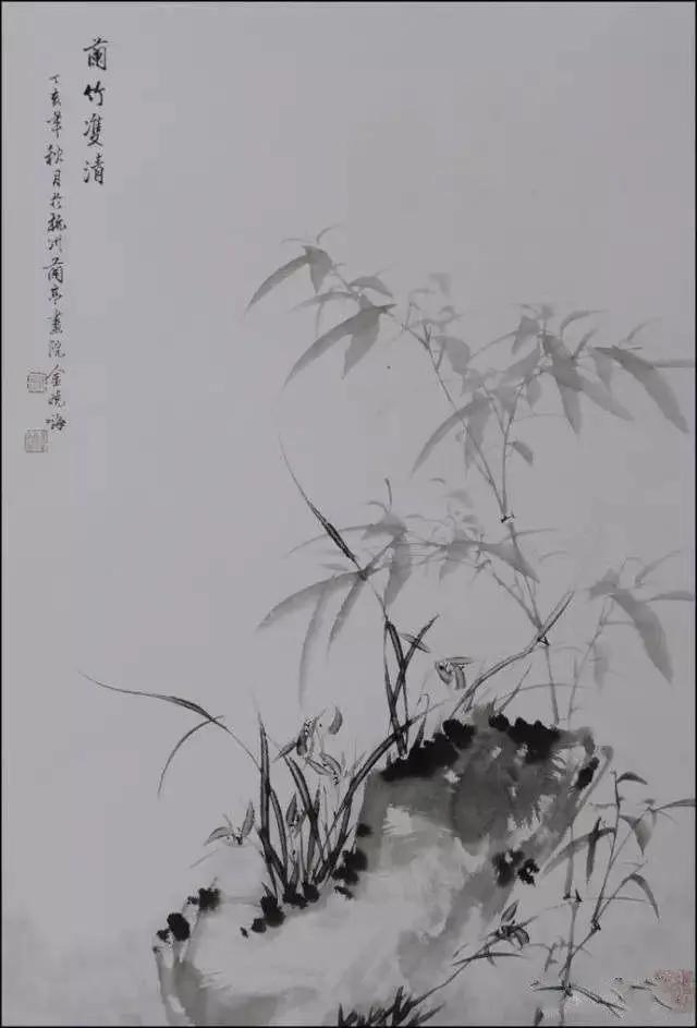 就“兰”这亘古恒久的命题,宋元以来的郑思肖、赵松雪、文征明、石涛等大师已将它写至极高境界,后人似乎难以企及。金晓海以其独立审美观的参悟,将兰的结体、程式、形姿乃至形式语言注入新机。