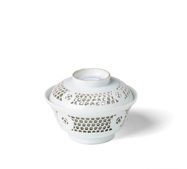 17世纪 白釉镂空盖碗