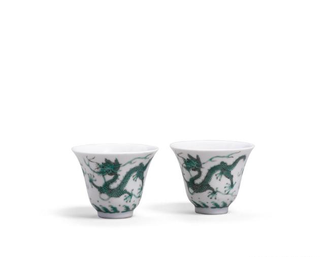 清道光 绿珐琅龙纹酒杯一对