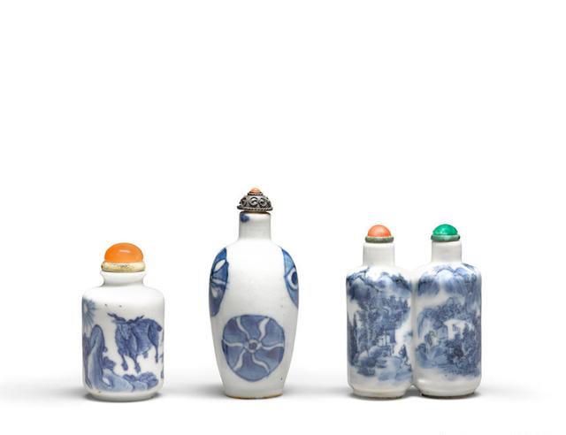 19世纪 三个青花瓷鼻烟壶