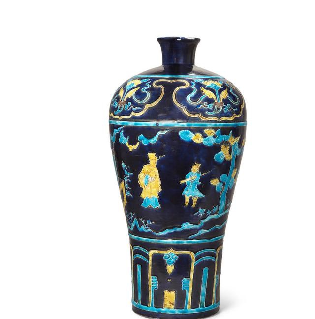 清朝 茄子釉人物故事图珐华瓷梅瓶
