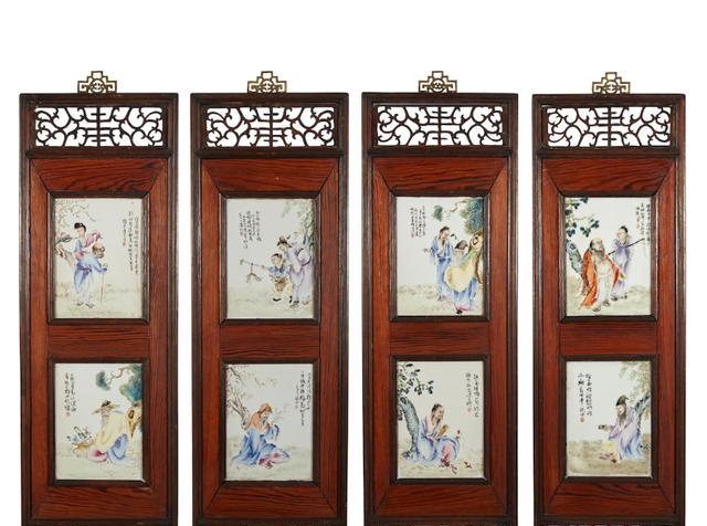 粉彩瓷板一对