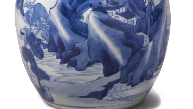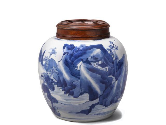 十八世纪山水青花罐