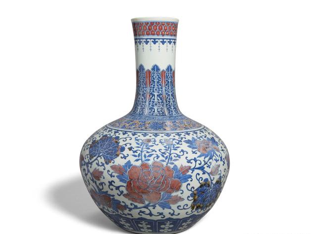 清 青花釉里红牡丹纹天球瓶