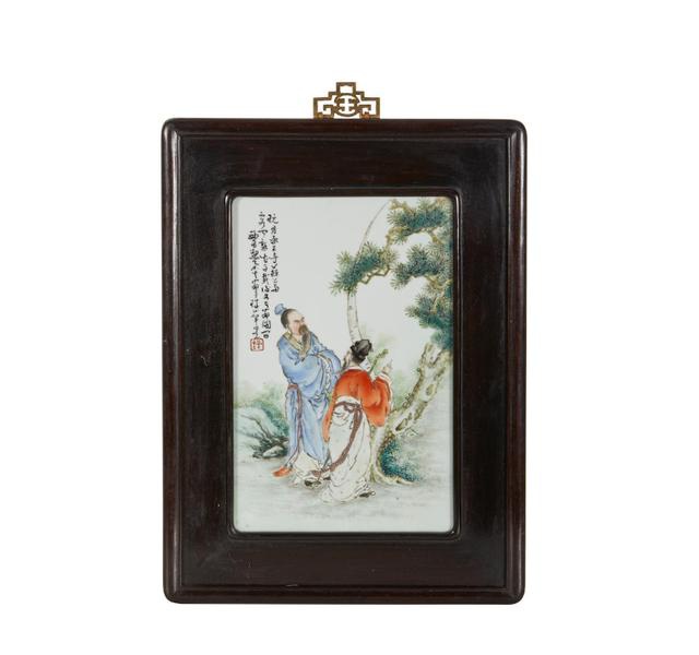 民国 珐琅彩人物瓷匾