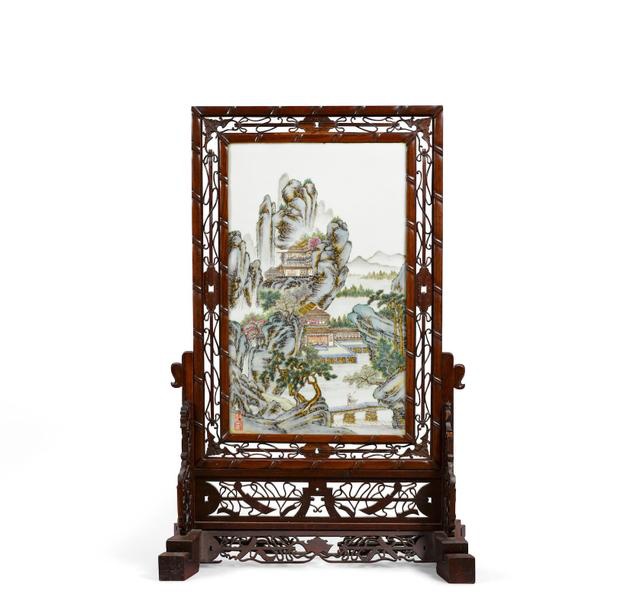 民国 粉彩山水楼阁瓷板