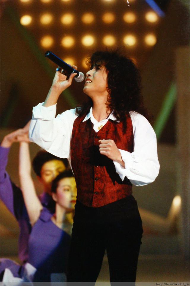 没过几年,在接触了大量西方流行音乐后,齐秦的音乐创作风格开始偏向摇滚乐,所以也经常皮衣皮裤加身。最经典的造型应该是1991年北京工体狂飙演唱会上额波浪大卷发,上身穿马甲,下身皮裤皮靴。