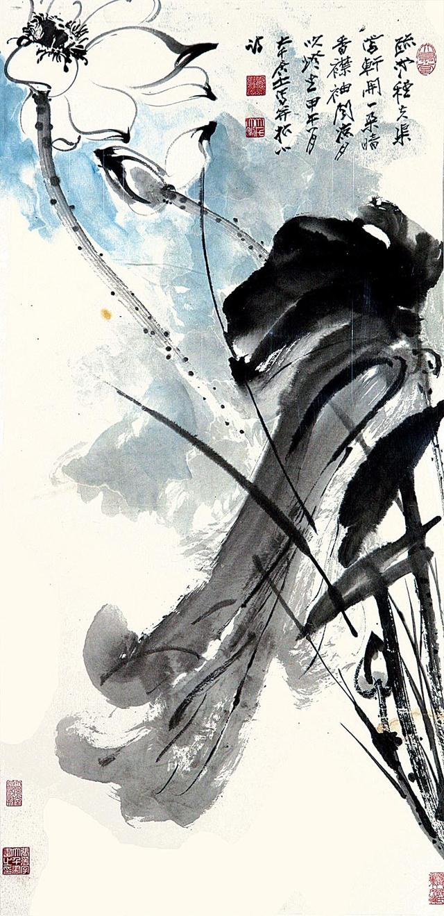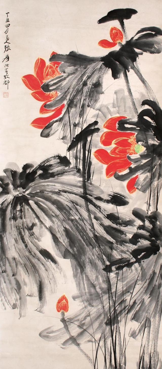 旅居海外的国画大师张大千先生擅长画花卉。他画的花卉种类很多,如荷花、秋海棠、牡丹、兰花、水仙、梅花等。而他平时画的最多的还是荷花,他自己常说:“赏荷、画荷,一辈子都不会厌倦!”