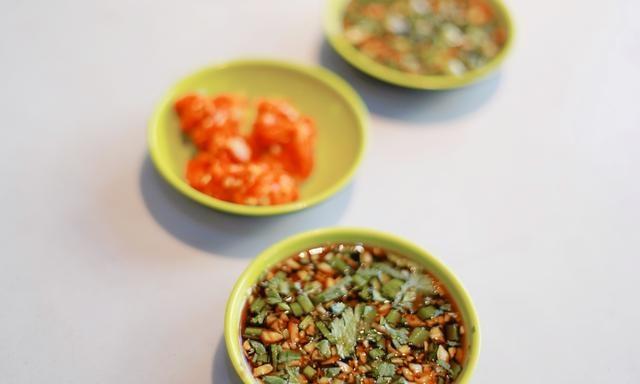 服务员小姐姐贴心地调好了蘸料。黎族调鲜用的“海南四宝”青金桔、沙姜、指天椒、什锦酱必不可缺。酸甜中略带香辣,越吃越上瘾。