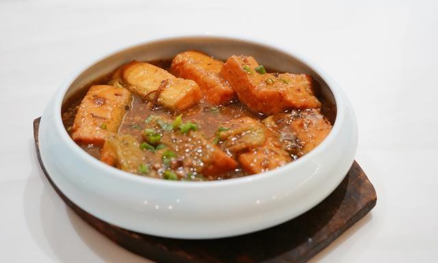 这道阿婆手工豆腐也是值得推荐的。传统手工制作的豆腐,总是充满豆香的味道。用穷乡阁秘制酱汁焖制而成,豆腐非常嫩滑,入口即化的感觉。香气袭人。