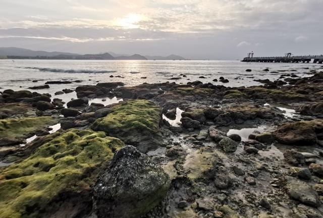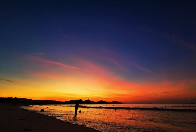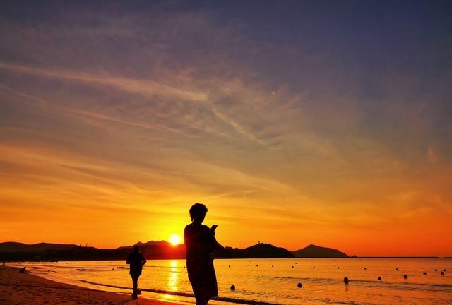 住得离大东海不远,爸妈早晨起得早,正好去海边看日出。因为大东海在三亚的西南端,在大东海看见的日出,不是从海面上,而是东面的山上。海上日出出了亚龙湾往海棠湾、陵水方向才有。不过看山上的日出也是很壮观的。阳光洒落在水面上,海边跑步的青年,散步的老年人,嬉闹的孩子都成为动人的剪影。还可以光脚在海浪上走一走,捡捡鱼虾贝壳,或是奇形怪状的珊瑚石,都是很有趣的 。