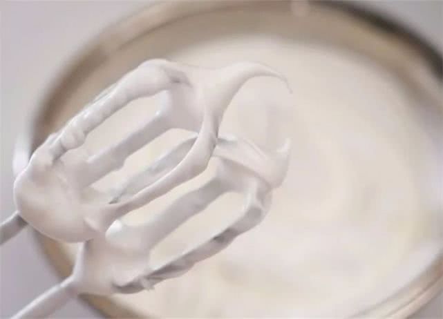 10、直至将蛋白打发至干性发泡状态即可(如图状态)。