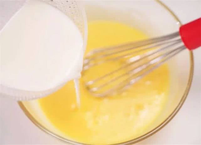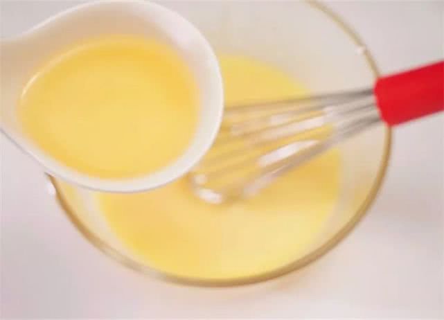 5、加入玉米油,搅拌至玉米油与蛋黄完全混合。