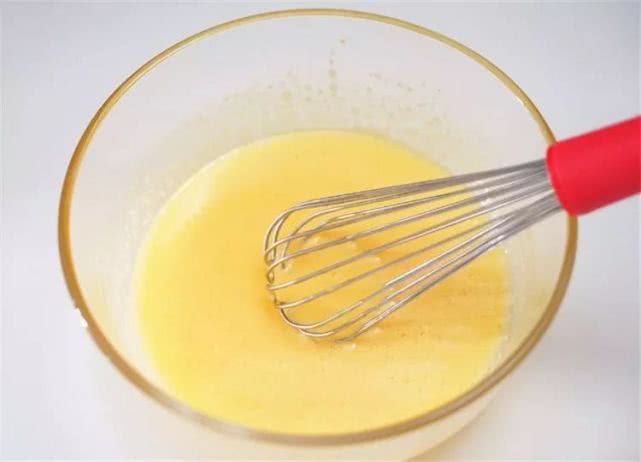 4、用手动打蛋器搅打至砂糖融化,蛋黄颜色微微变浅。
