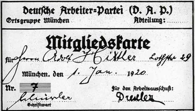 在1919年9月12日,希特勒奉命去调查一个名为“德国工人党”的小党派的情况。在当时的德国,这种党派遍地都是,理念也千奇百怪。而这个“德国工人党”的纲领则为:社会要求、国家主义、反犹主义。你乍一听,还以为这是共产党呢,但实际上不是,这党派严格说,当时就是一群对社会不满的人,聚集而成的。每天的任务就是发牢骚和满嘴跑火车,一点正事都做不了的那种。