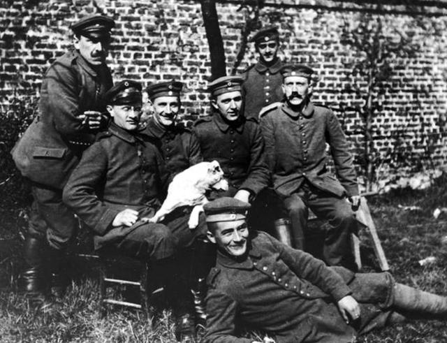 此时的希特勒在军队里,是以一种狂热者的形象存在的。作为巴伐利亚预备步兵团第16团的士兵,希特勒有着近乎疯狂的勇敢。他以传令兵的身份,参加了多次战役。要知道在第一次世界大战里,传令兵是死的最快的士兵,而希特勒却总能活下来,所以他得到了一枚一级铁十字勋章和一枚二级铁十字勋章,并晋升为了上等兵。值得一提的是,希特勒原本有着传统的德意志大八字胡,但后来因为不方便戴防毒面具,因此剪掉了自己的八字胡,逐渐向小胡子发展。