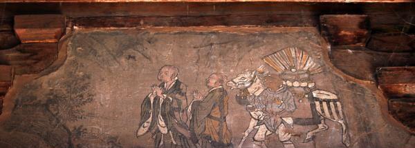山西稷山县青龙寺大雄宝殿拱眼处唐僧取经壁画(元代)