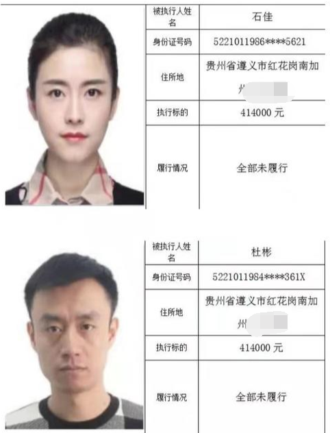 其中,一名住所位于贵州省遵义市红花岗南加州的失信被执行人石佳,因长相靓丽、执行标的额高达41万元,引发网友关注,网友纷纷好奇该女子的经历及所涉及的案情。