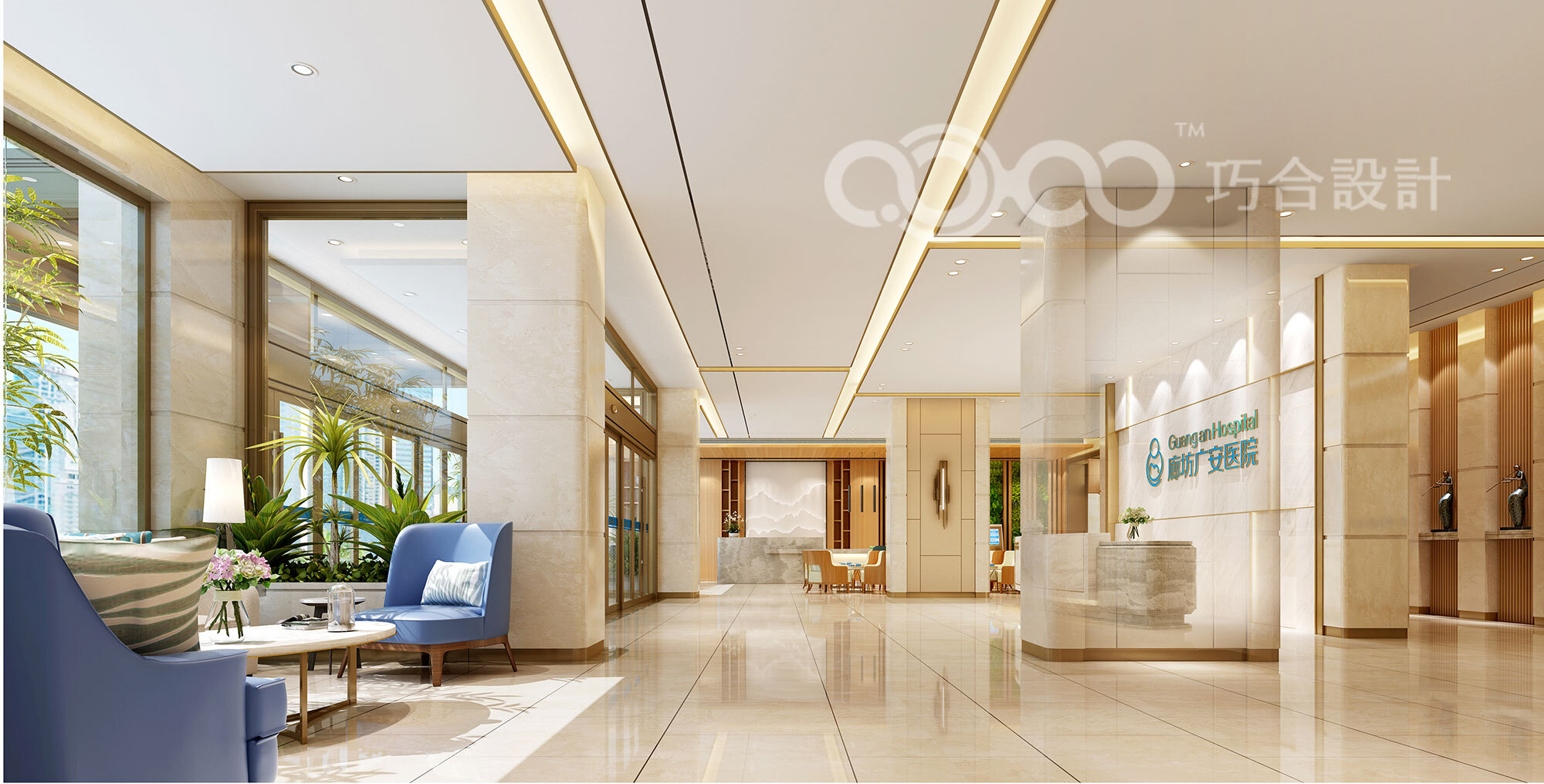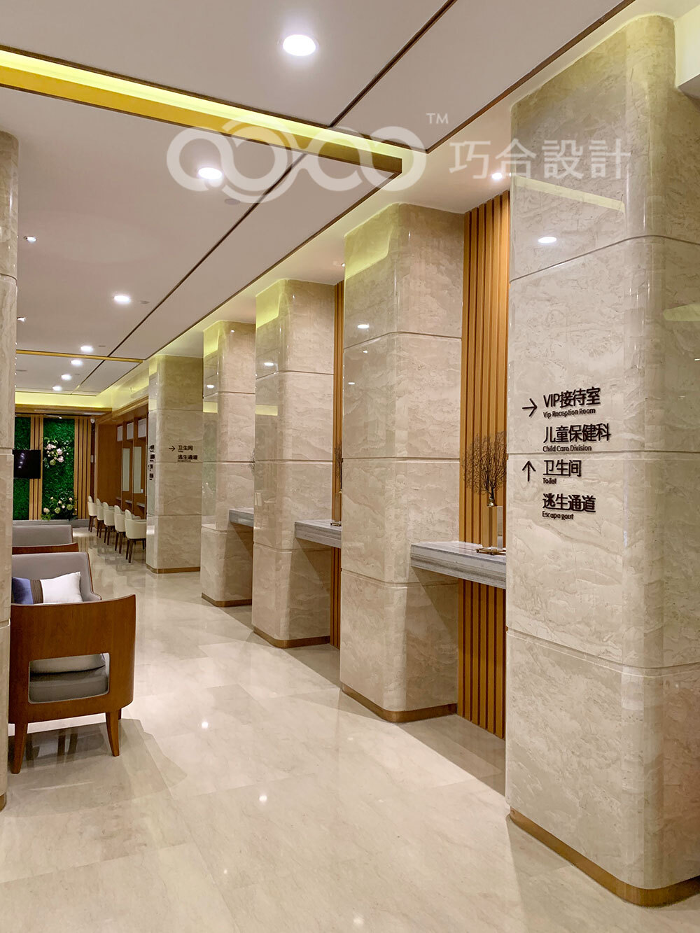 在这个妇产专科医院设计项目中,长沙巧合设计团队以“形式追随功能”这一理念作为参照,去布局医疗空间的设计,达成空间功能和艺术表现的平衡。