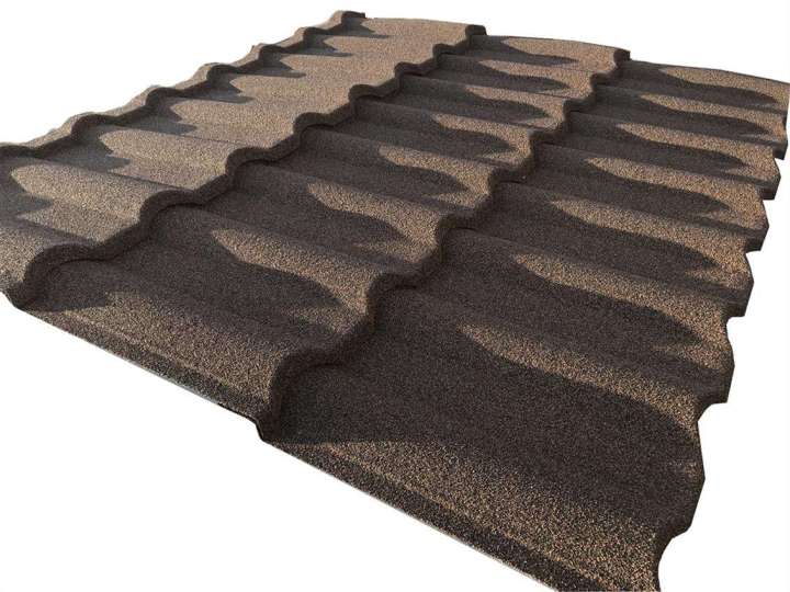 1.首先金属瓦表层是丙烯酸面漆,作用是增加光泽度和结合强度,作为采砂表面的保护层,防止雨水渗漏在下层的颗粒上,延长彩砂色彩的寿命。