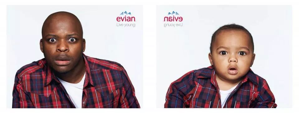 从滑旱冰的宝宝PK舞技,到街边神奇的哈哈镜可以把人变回婴儿,喝了依云水你就能像婴儿一样年轻。“活出童真(live young)”的品牌口号从2009年开始出现在大众视野,并沿用至今。当年的轮滑宝宝(Roller Babies)视频仍然是YouTube点击量最高的广告之一。