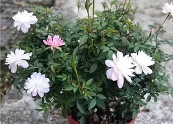 姬月季它也叫姬乙女,是一款超级无敌小的迷你的月季,植株一般就在10公分高度,最高也就15公分。它的花朵春秋两季开花粉色,完全绽放后会变成纯白色,花朵小,花量却非常大。
