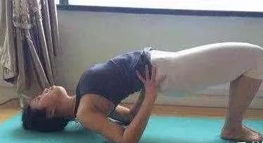 先来看看“三点式”,男性们别想歪了,这里没有你想象的那些东西,看下图,难度之大,容易受伤,几乎不推荐做,通过头跟双足三个点的支撑,搭起一座拱桥,达到锻炼腰背部肌肉的效果,一不小心脖子就断了!不推荐!