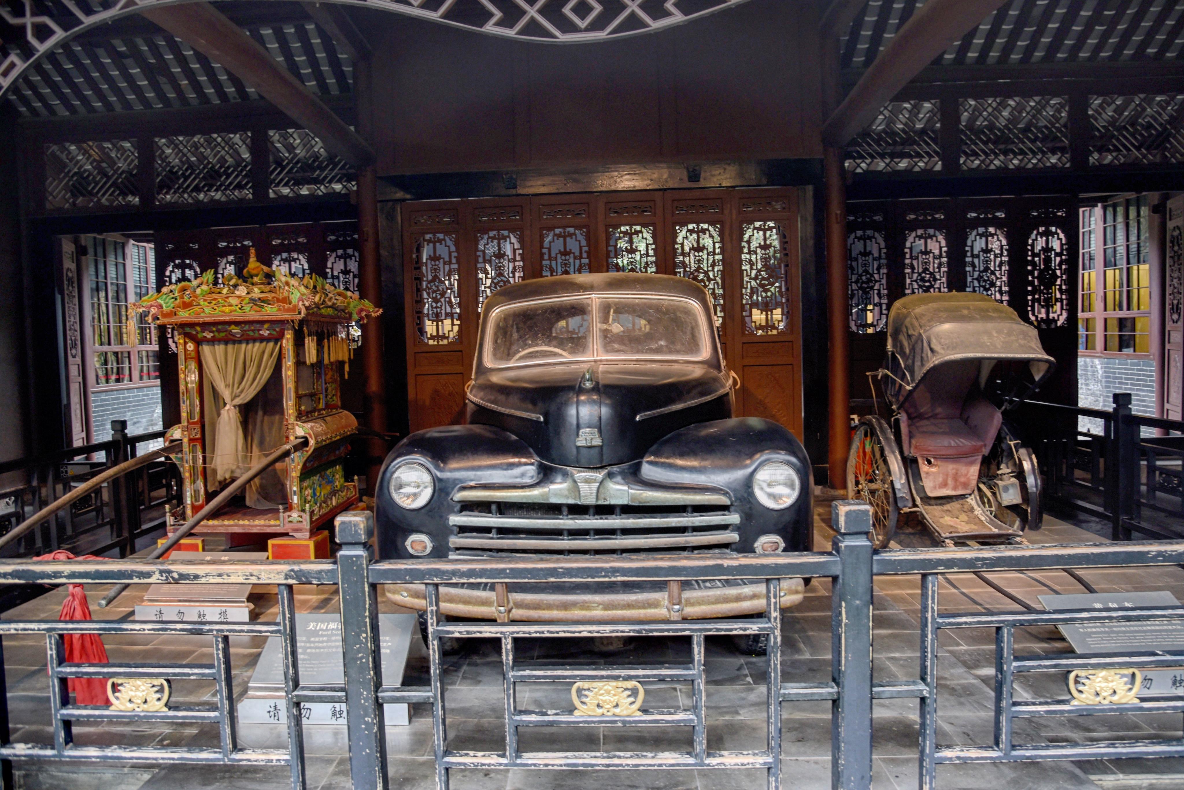院落里还停着刘文彩的“坐骑”们,感觉也是交通工具进化史,从没轮的四人抬轿子,到两轮儿的黄包车再到四轮的轿车,刘文彩也算是一个紧跟时代的人了,特别是这个美国福特牌高级轿车在当时价格绝对不菲,一般人家望而却步。