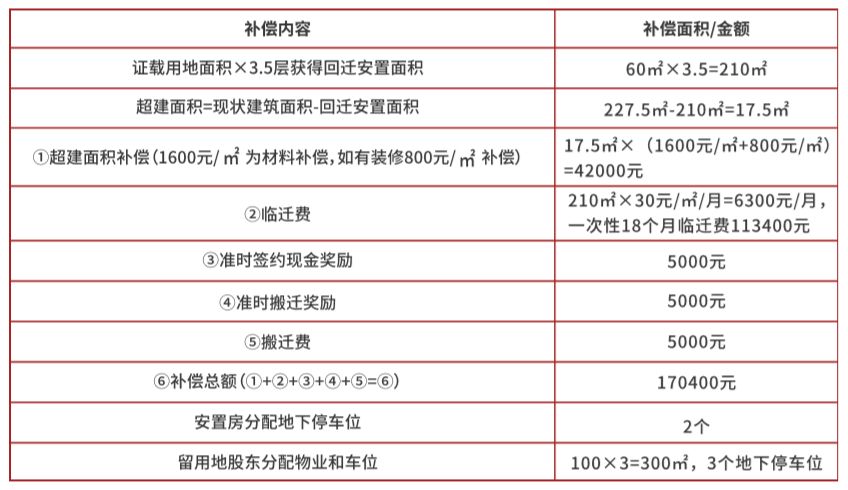 案例2:罗先生的房屋现状为3.5层,框架结构,有证,证载3.5层,证载用地面积60 m2, 证载 建筑面积210m2,现状建筑面积227.5m2, 居住股东人数3个。