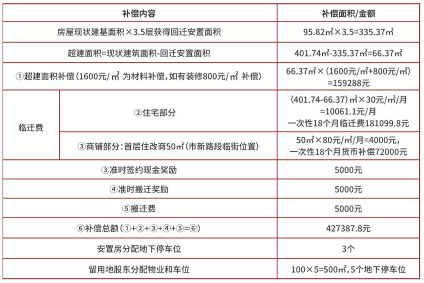 案例4:罗先生的房屋位置在市新路段临街位置,现状为4层,框架结构,无证,实测建基面积95.82m2, 现状建筑面积401.74m2, 楼下一层住改商,面积有50m2, 居住股东人数5个。
