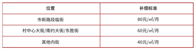 答:在补偿方案表决通过前有营业执照和税务登记且正在营业的住改商商铺,按首层实际营业的建筑面积确定,根据不同位置一次性给予18个月的货币补贴。