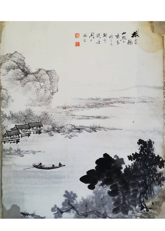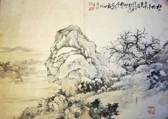 潘敬先家中原收藏有外公《泸山图》等画作,可早年已散失,现仅珍藏有外公手稿四幅,均在一平方尺左右。分别为春景图《拟梅花道人画意》、山水图《拟黄鹤山樵画意》、雪景图、山水图《杜少陵亭》。