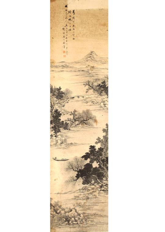 吴镇,字仲圭,号梅花道人,浙江嘉兴魏塘人,是元朝著名的山水画大师,和黄公望、王蒙、倪瓒合称为“元四家”,在山水画和墨花上面成就极高,受到了世人的认可。凉山州博物馆珍藏的《万缕柳丝》和潘敬先珍藏的春景图,便注明拟梅花道人画法。