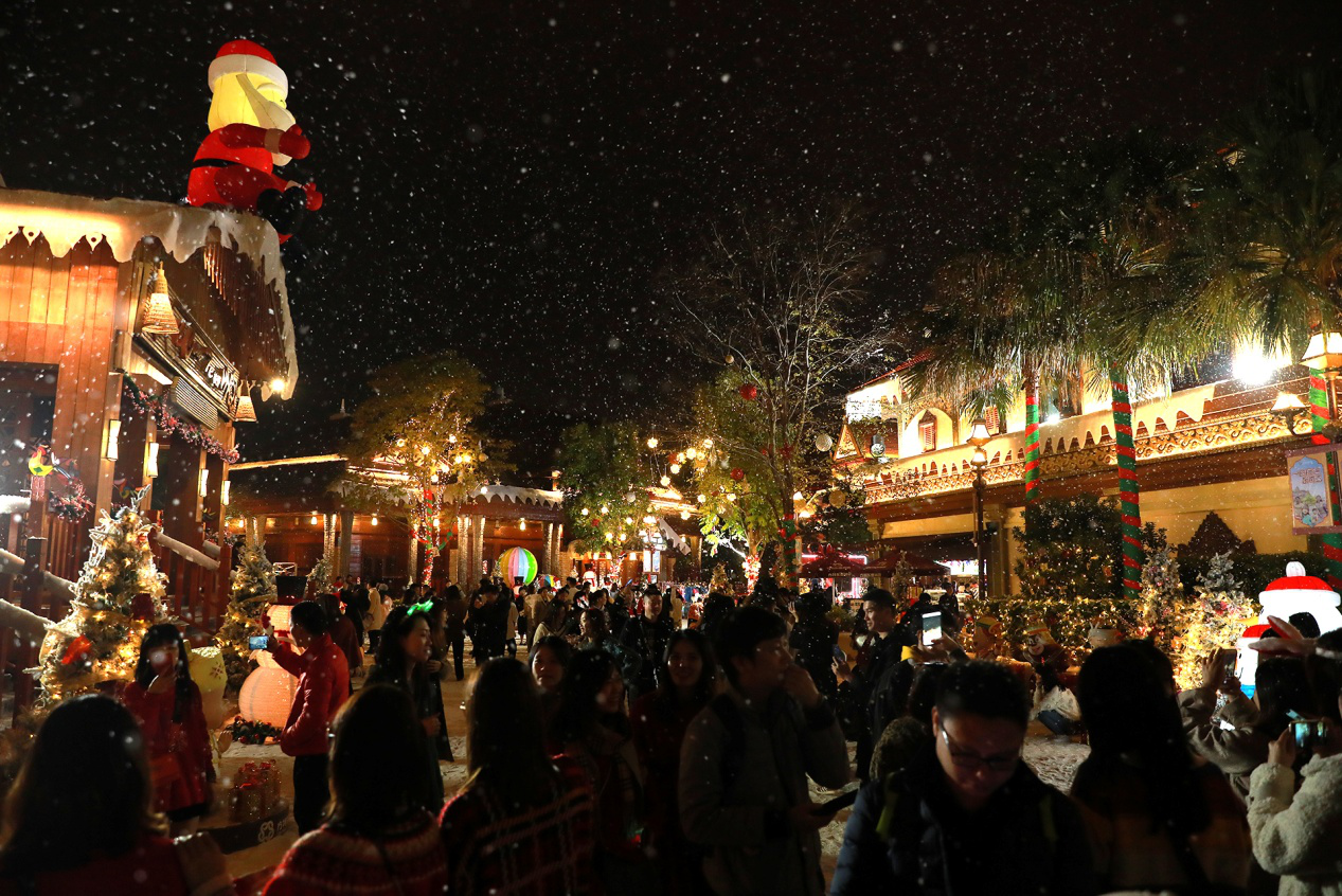 “梦幻飘雪小镇”点亮夜间冰雪绮梦