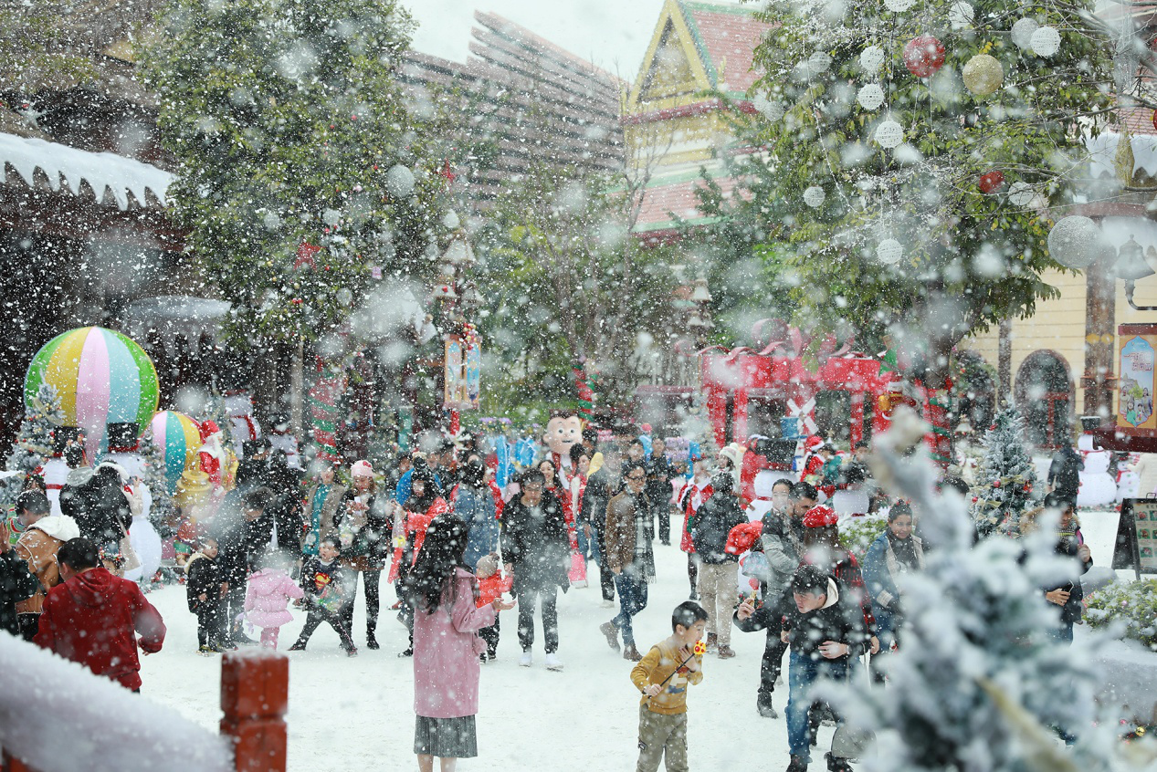 本次飘雪跨年季期间,南宁方特特别引进冰雪活动,全新打造梦幻飘雪小镇。游客不仅可在园区体验44个主题项目,还可在活动期间,持续九天在梦幻飘雪小镇欣赏飘雪胜景,届时游客可一边赏雪,一边与身着新年装束的“熊出没”家族惊喜互动,同时收获精美的“方特礼物”。