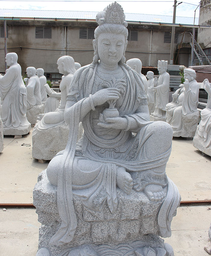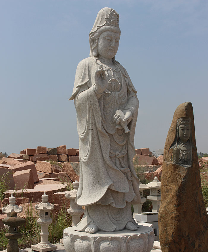 石雕观音在我国民间相当受欢迎,凡是佛教信徒几乎都要在家供奉一尊汉白玉观音圣像来祈福祈愿。而现在随着寺院建设力度的加大,观音石雕像不再局限于汉白玉这种石材,由于汉白玉洁白无比的特点,限制了它的摆放场所,无法满足人们在露天环境摆放的条件,人们开始选用更好的更适合室外摆放的天然石材花岗岩。观音石雕像形象端庄肃穆,祥和宁静,这般慈悲的形象标准,对于石雕观音像的雕刻要求是非常高的。