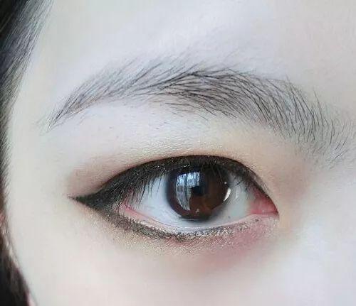 格外注意:内眼线紧贴着睫毛根画一条就行,可别把内双的部分全填满了,不然后果自负。