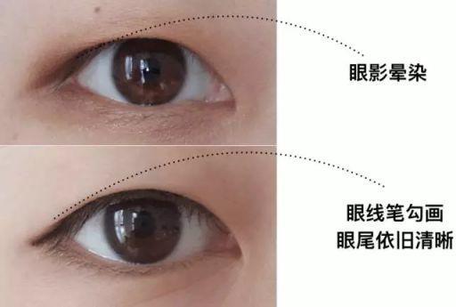 这还是眼皮折叠惹的祸,眼睛只要眨巴几下,就会发现辛辛苦苦画好的眼妆已经晕掉了。