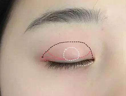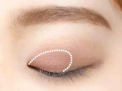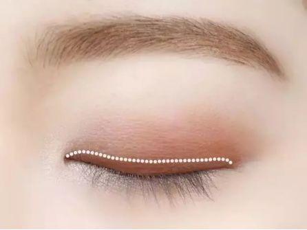 晕染位置:画眼影的宽度在睁开眼睛的情况下,3~5毫米的程度。大概就是睁开眼睛之后用手可以压出双眼皮褶的那条线的高度。