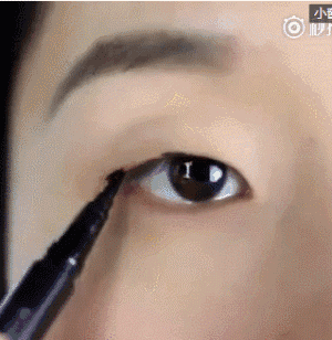 如果想画外眼线,让眼睛更显大,一定的注意要找准基准线。基准线差不多就是眼皮两倍褶皱的位置,睁开眼才不会把眼线吃掉。