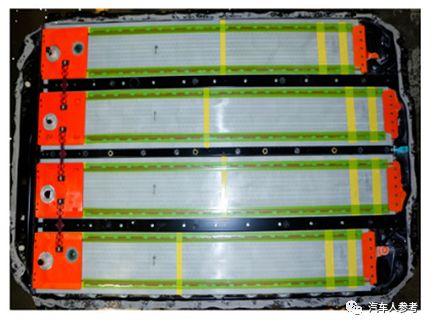 宁德时代在之前的文章已经做过分析,这里以特斯拉为例,如下图为特斯拉Model 3电池包内部拆解图,可见Model 3是由四个长度约2米的大模组组成,而之前特斯拉Model S的模组为16个,详情请见()。