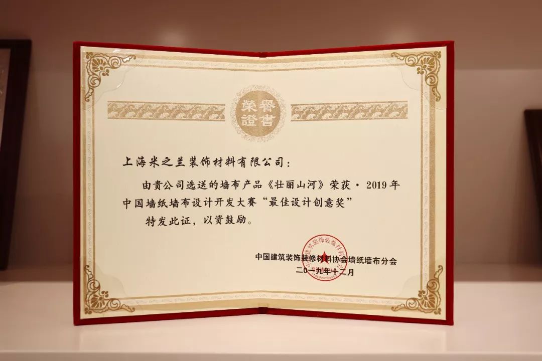 ▲ 《壮丽山河》荣获中国墙纸墙布设计开发大赛“最佳设计创意奖”